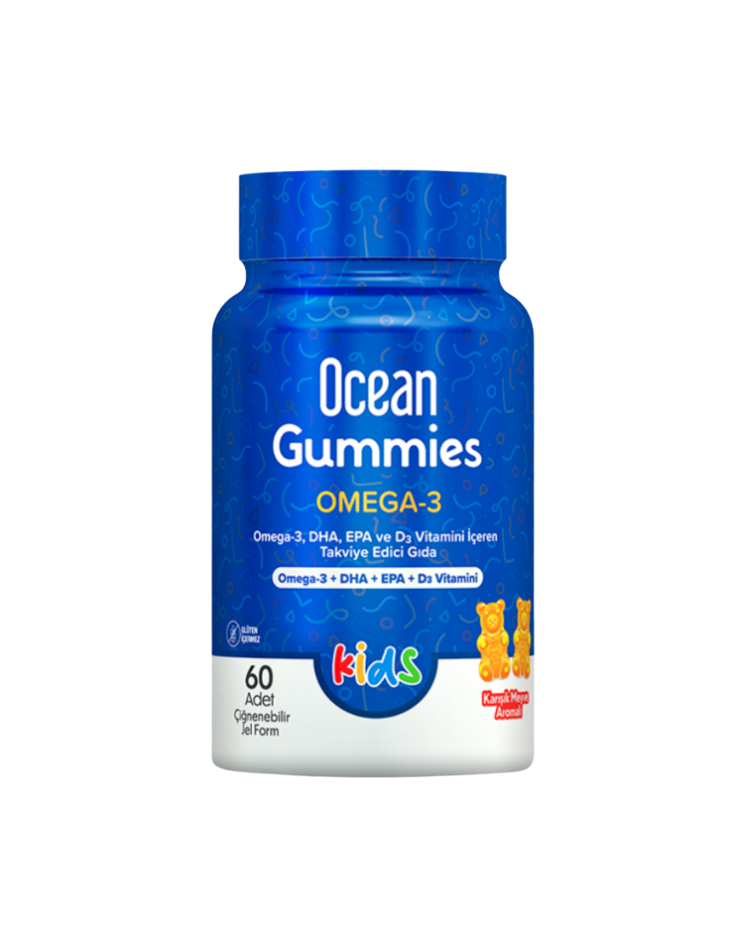 Ocean Gummies Omega-3 Kids is a chewable gummy food supplement specially developed for children. The formula contains omega-3 fatty acids (DHA & EPA), vitamin C and vitamin D3 to support brain development, the immune system and overall health.
